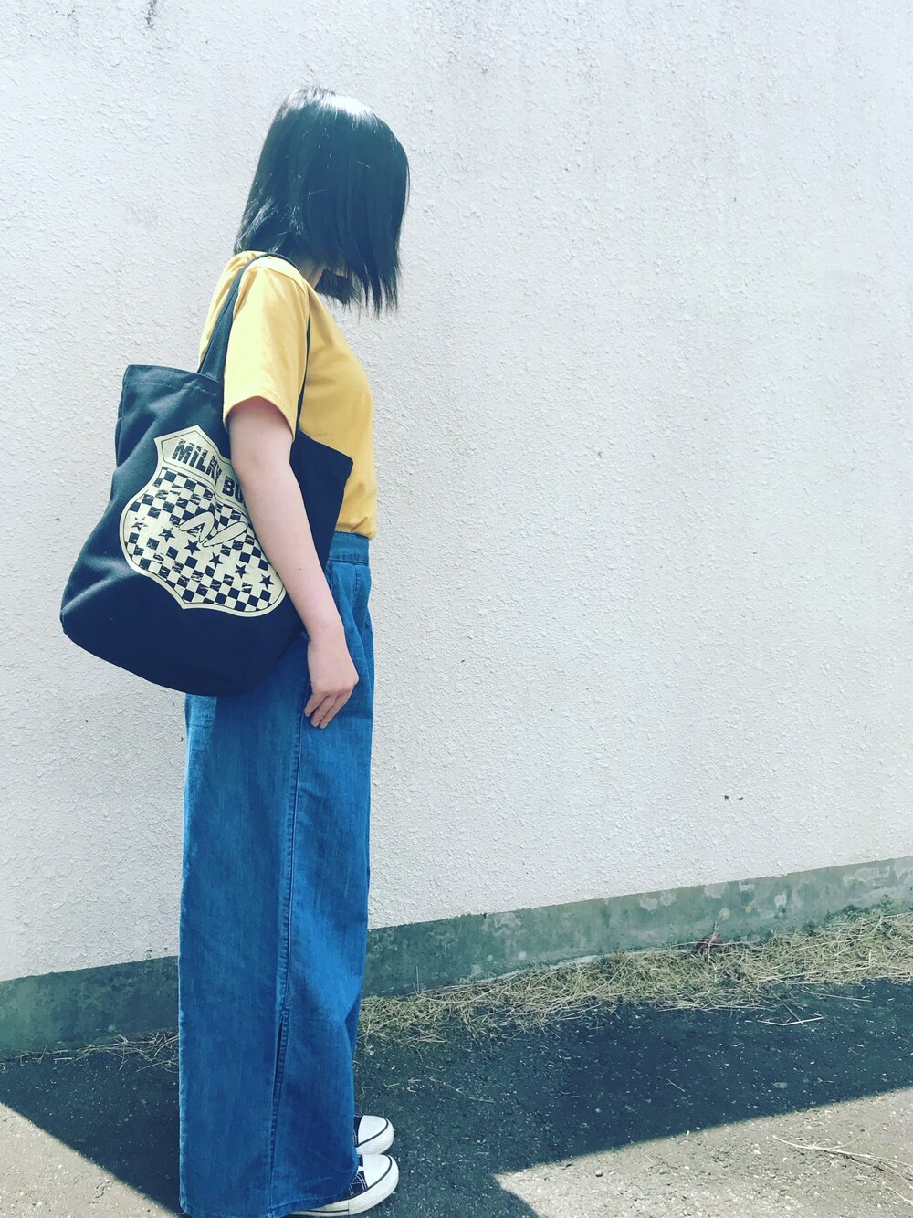 ワイドパンツお気に入り GUのスリッド入り◎ MilkyBunnyわかる方いますか? TシャツはINGNIの福袋。