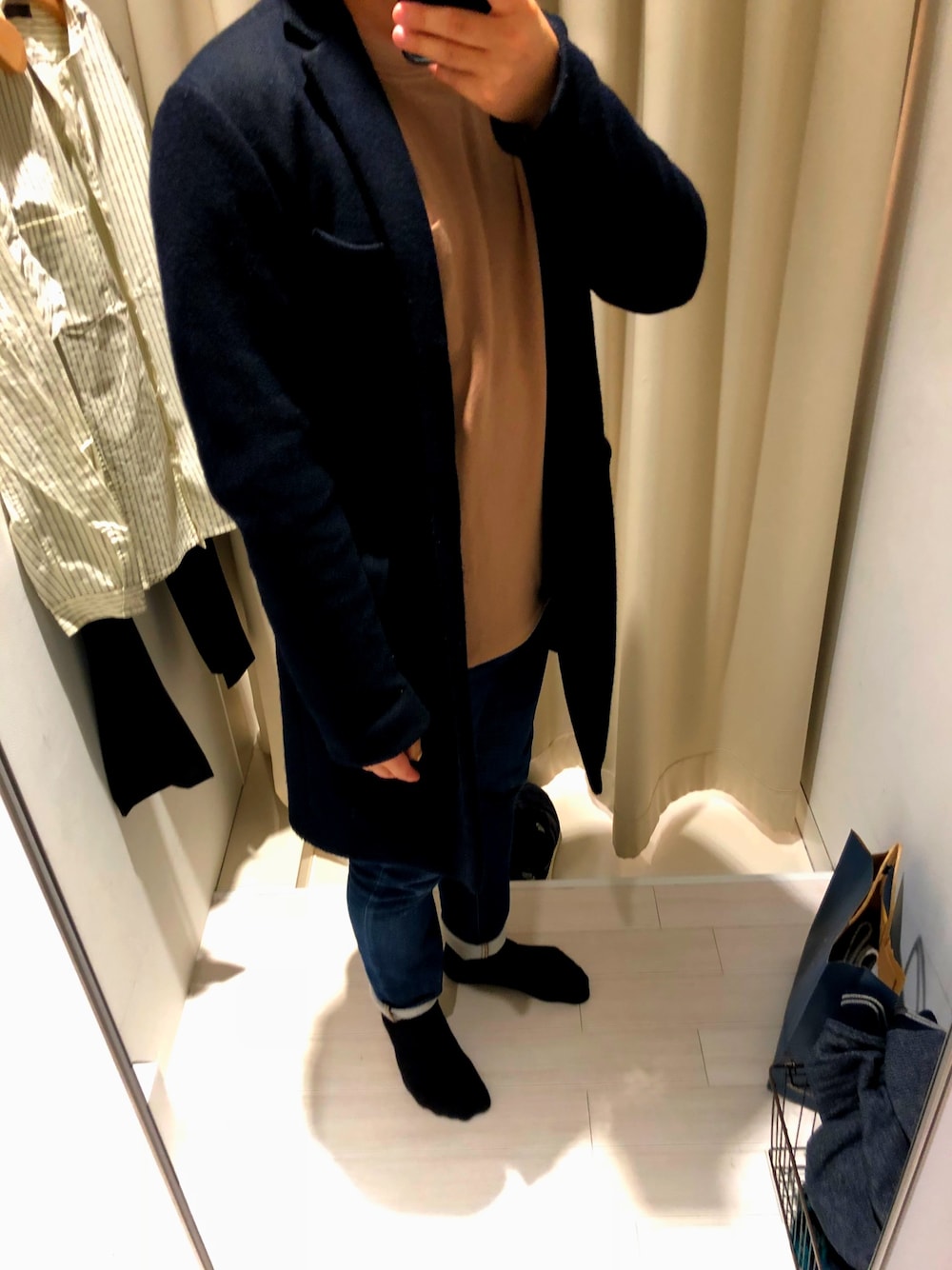 初めての投稿です。 コートが分厚いのですが、春先には薄手のアウターを合わせればいい感じになるかも。