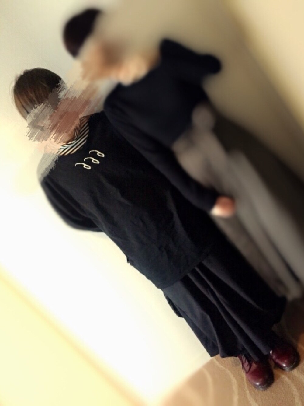 またまたブラックコーデに💭 ブーツお兄ちゃんので 中にもこもこ靴下を履いて大きさをカバーしてます