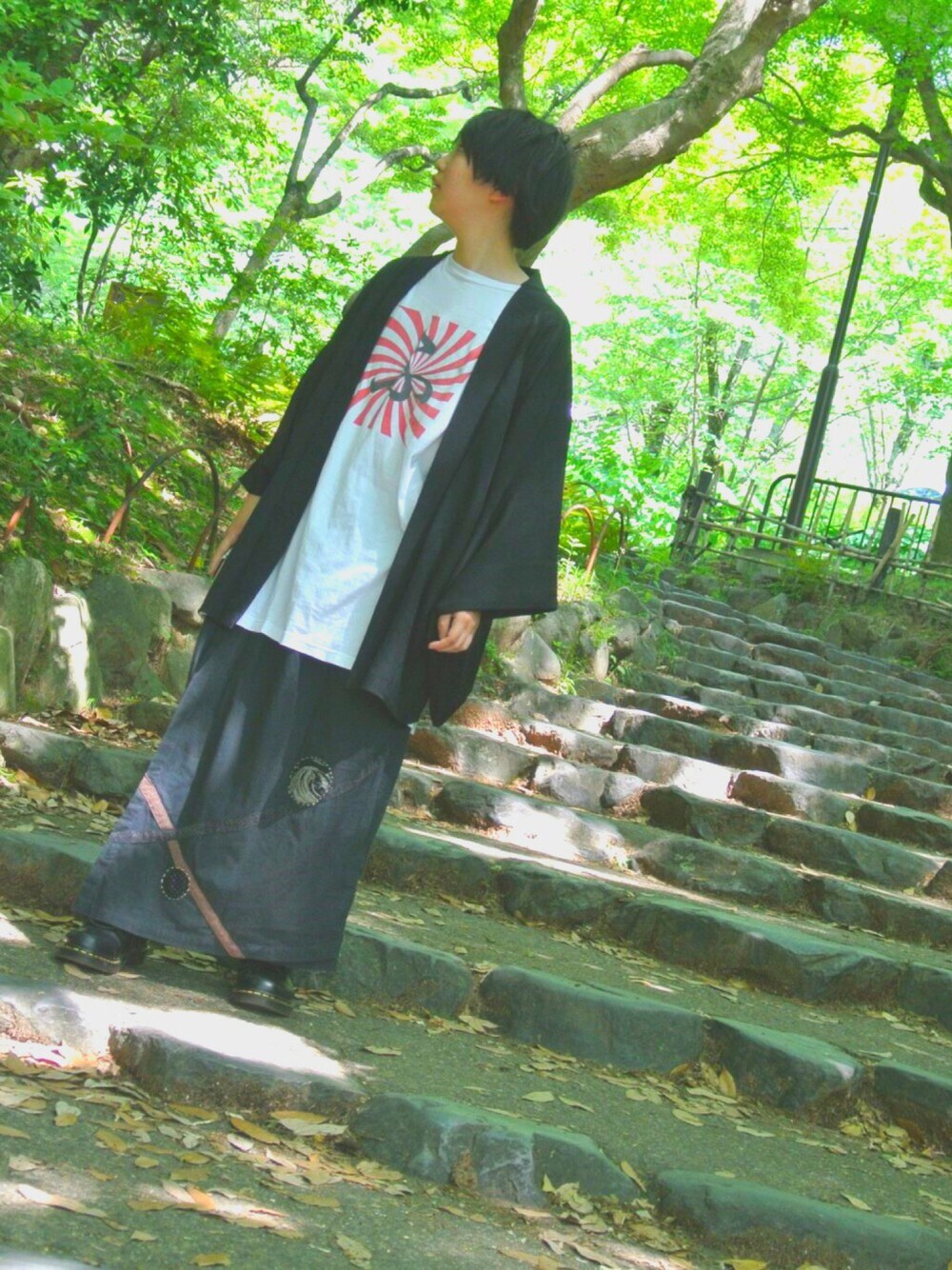 カメラを買った友達が お洒落に撮ってくれました📷 場所は京都の円山公園です。 すごい自然で綺麗なところなので 行ってみてください。 そんな私は奈良県民ですが。 京都で撮影とのことで 下はタイのものですが 羽織りを合わせてみたりと 和装っぽくしてみました。