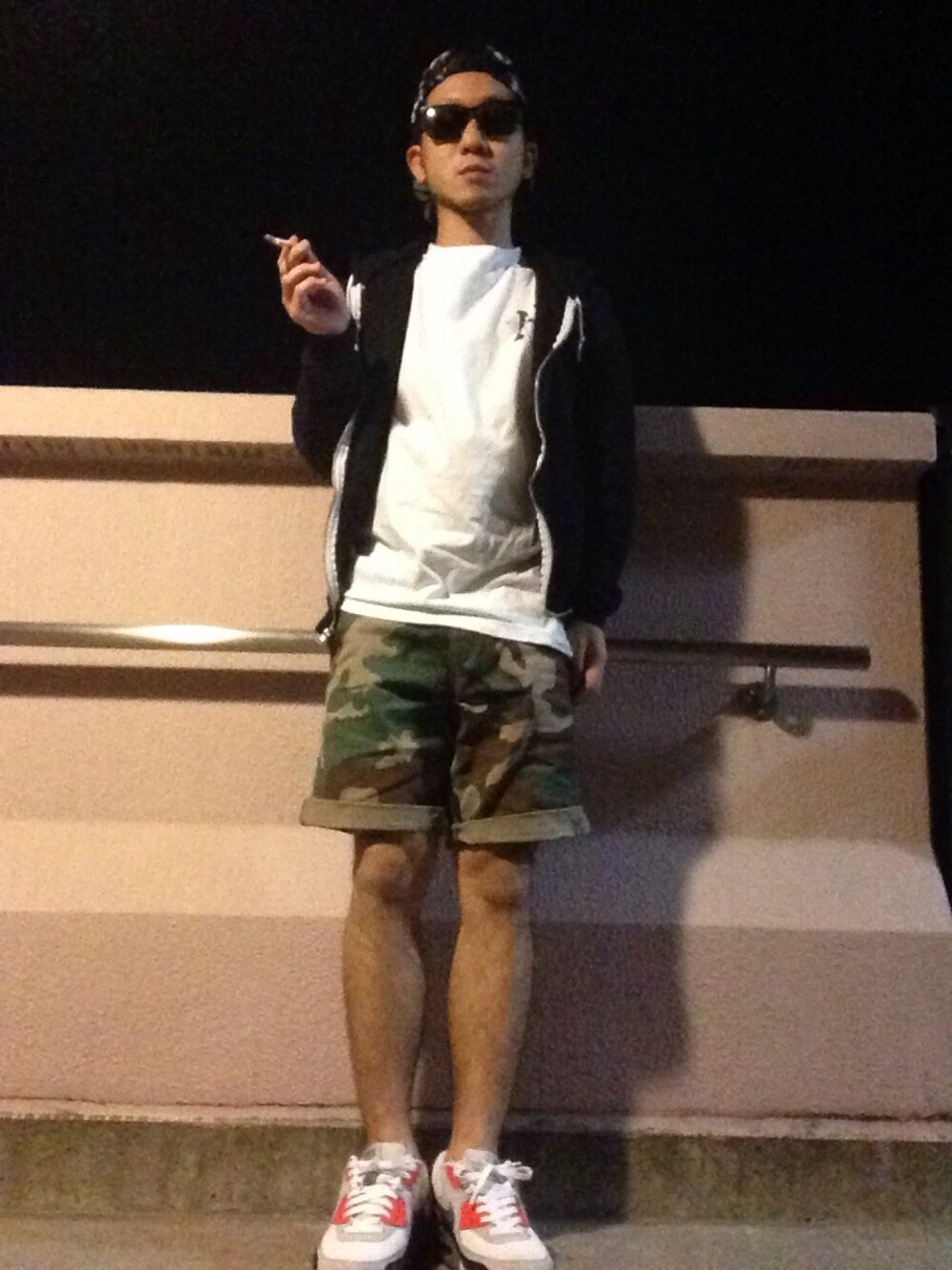 Cap...huf Sunglass...RAYBAN Parka...American apparel T-shirts...huf x diamond suprly Bottoms...huf Kicks...nike