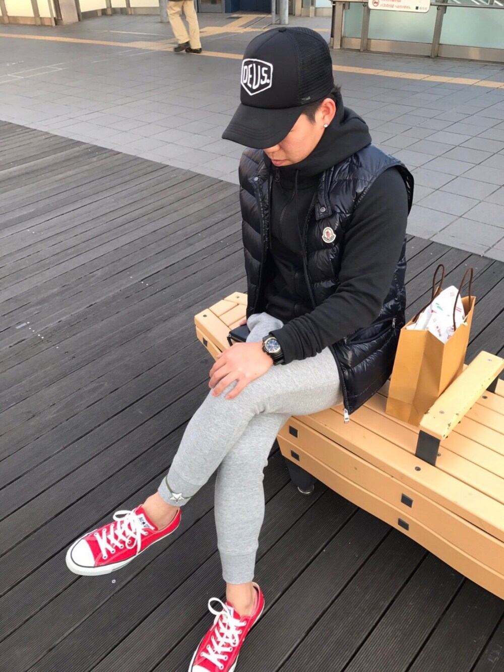 N.Hのスニーカー「converse コンバース ALL STAR OX オールスター OX 3216 RED(US)」を使ったコーディネート