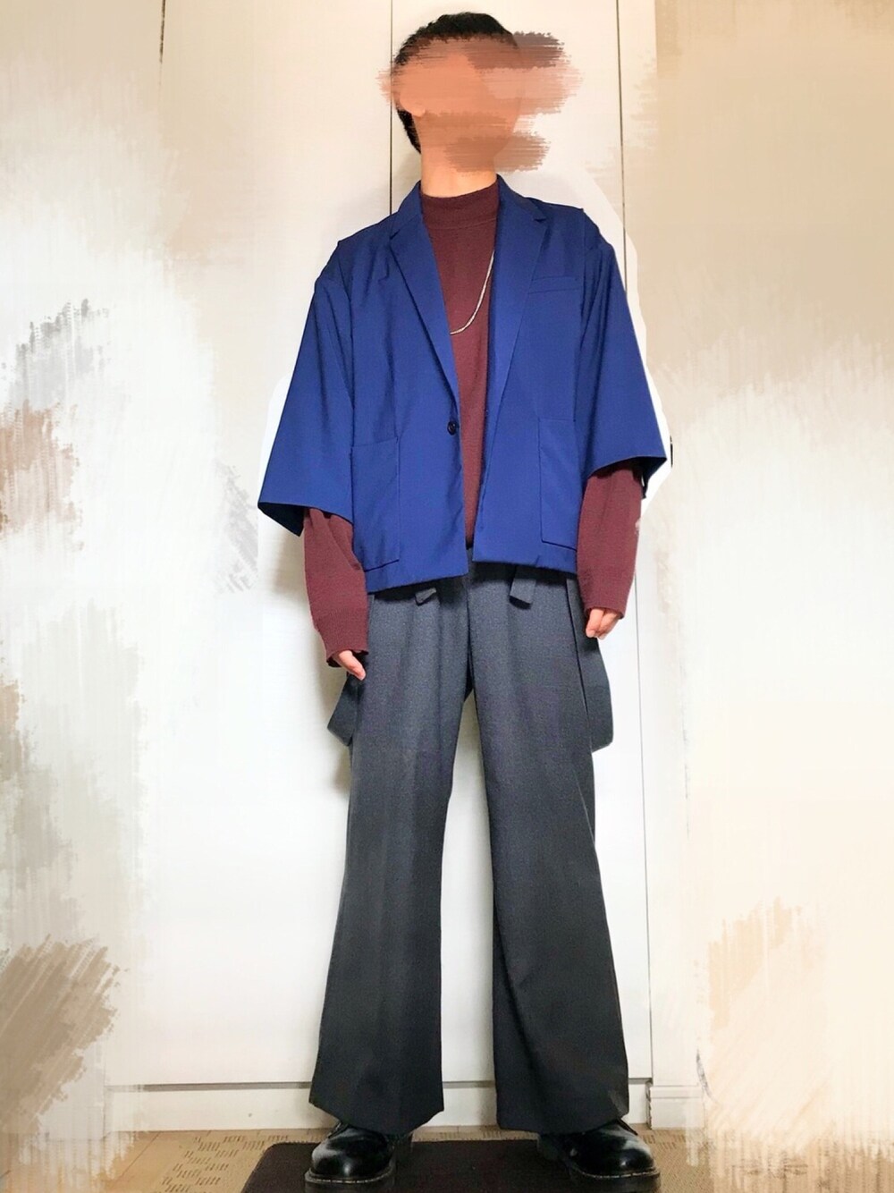 反対の色だからジャケットが目立ちますね笑 全体的にオーバーサイズのゆるゆるコーデ。 このテーラードジャケット買ったは良いけど案外合わせるの難しい… 〜size〜 ジャケット M ニット LL パンツ S シューズ 7