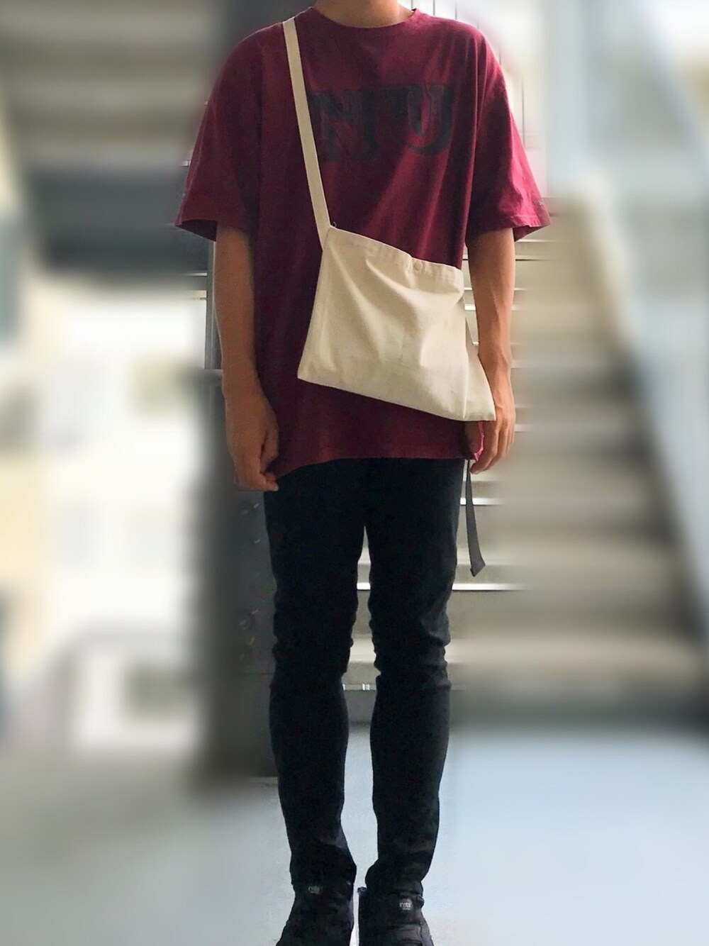 ロゴTにサコッシュを。 夏なのに暗くなりすぎるからサコッシュしてると丁度良い👍
