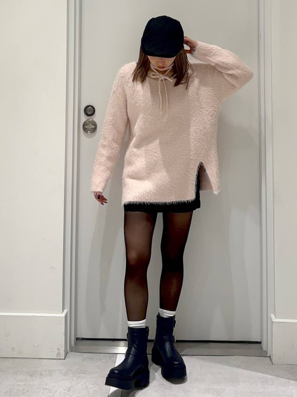 トップス👕 首元がざっくり空いたチュニックニット🎀 シャギー素材で丈感長めなのでミニワンピとしても着れちゃうアイテムです! スリットが入ってるのでパンツと合わせてもスッキリ着られます🎶 ボトムス👖 カーゴポケットデザインのミニスカート☆ インナーパンツもついてるのでミニで安心して履いて頂けます♪