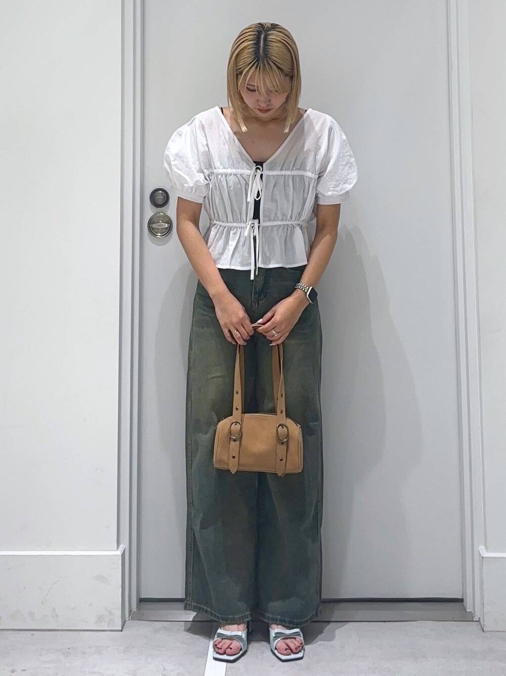 hm2931(GEORGE'Sイオンモール大高)のサンダル「【2025SS】エナメルリボンサンダル」を使ったコーディネート