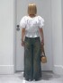 トップス👕 パフスリーブがポイントのブラウス★ 可愛らしい印象になりがちなブラウスですがコットン 素材なのでカジュアルらしくと合わせられるアイテムです! ボトムス👖 太めのシルエットとヴィンテージ感のあるカラーが ポイントのデニム! シンプルで使いやすくなんでも合わせやすい万能アイテムです‼️