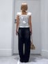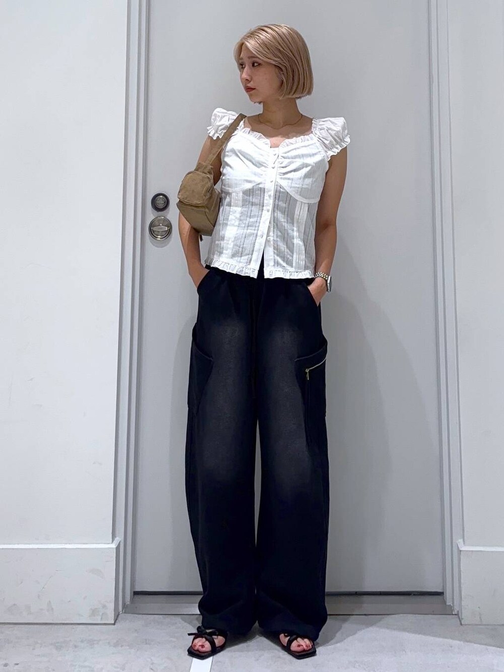 トップス👕 襟元にゴムが入ってるのでオフショルでも着られる フリルブラウス🎀✨ 凹凸感のある生地がシンプルすぎずポイントになって可愛いブラウスです! ボトムス👖 ゆったりとしたシルエットですが、形が綺麗でスタイルアップして見せてくれます‼️ ヴィンテージ加工されているのでカジュアルになりすぎず履いていただけます☆ 丈感は少し長めなのでウエスト部分を一個折って はくのもおすすめです‼️