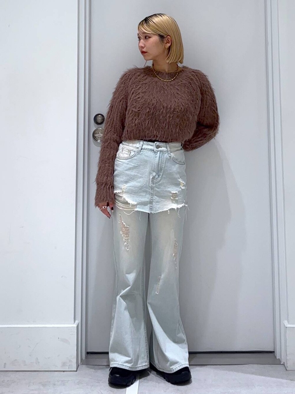 hm2931(GEORGE'Sイオンモール大高)のニット/セーター「【2024FW】クロップドシャギーニットプルオーバー」を使ったコーディネート