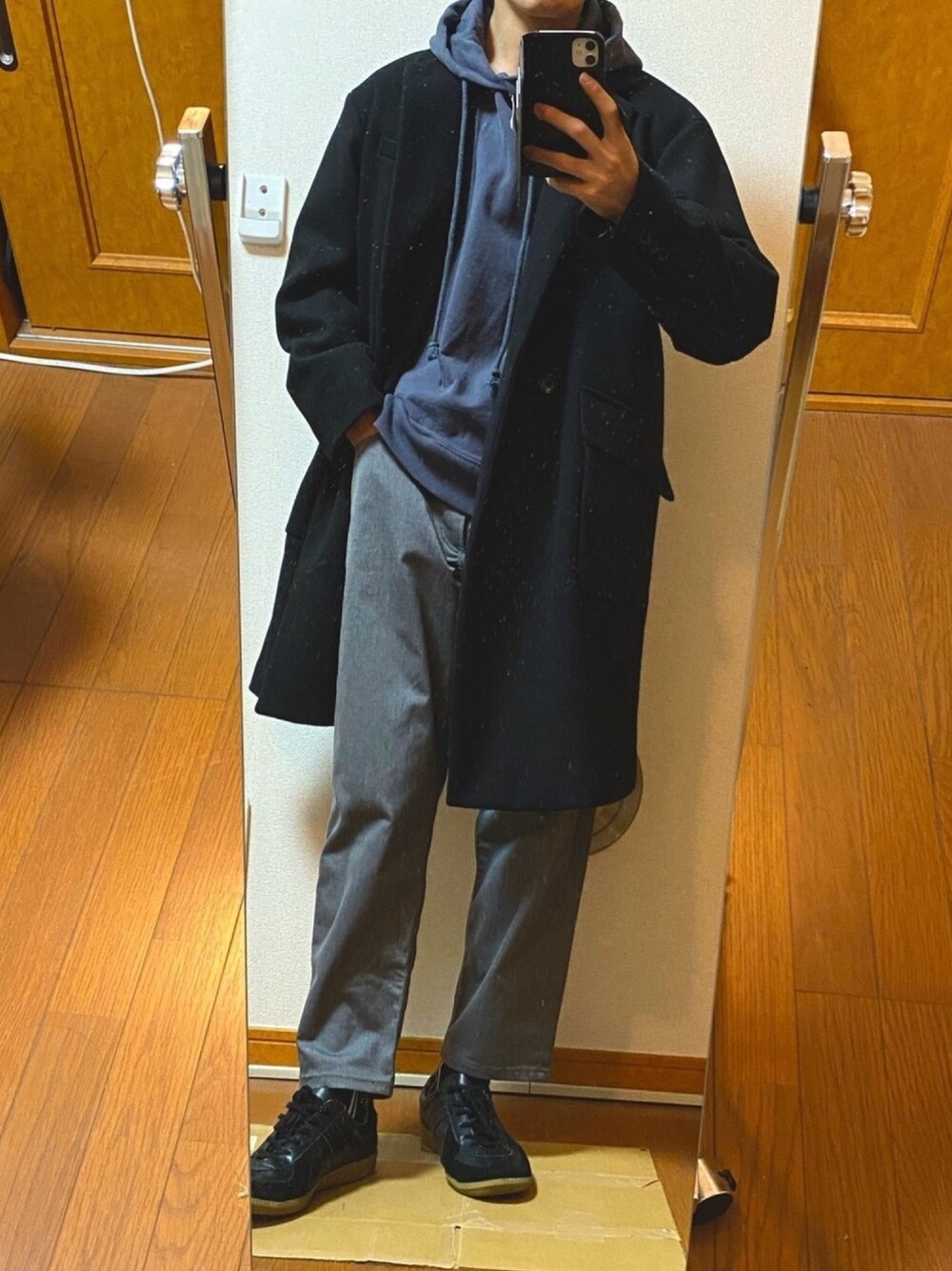 フラペチーノのチェスターコートを使ったコーディネート