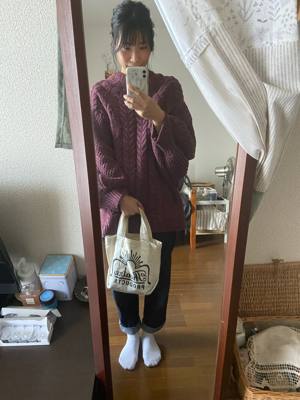 この色のニットあんまり似合わないかなぁ? 髪も結ぶかおろすか悩んで結局おろした🤣 顔が恐ろしく浮腫んでた一日🎵笑