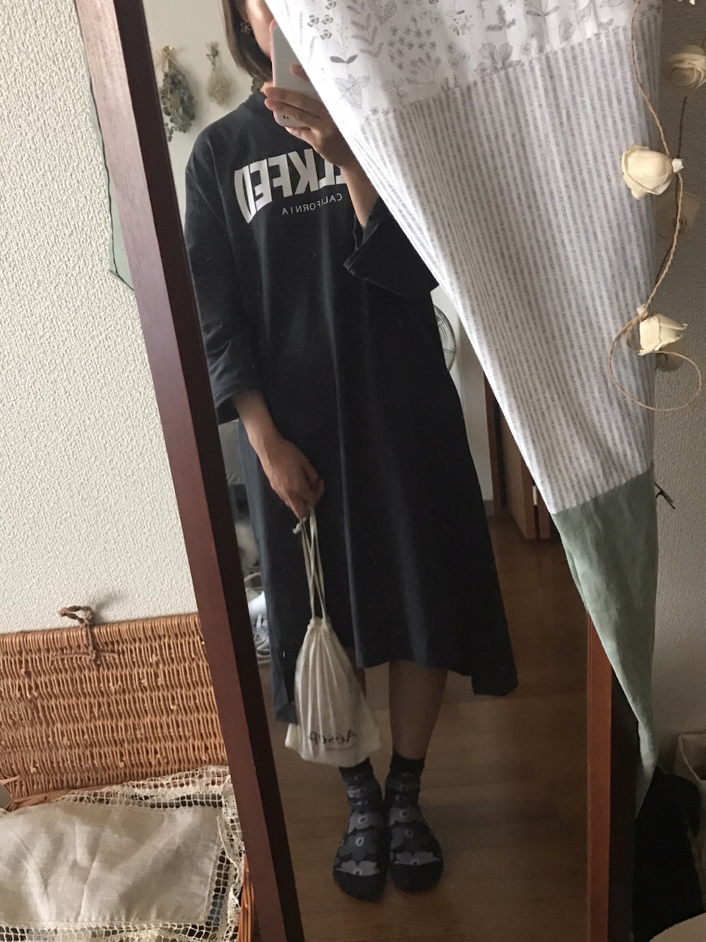 y*のワンピース「LOGO S/S DRESS」を使ったコーディネート