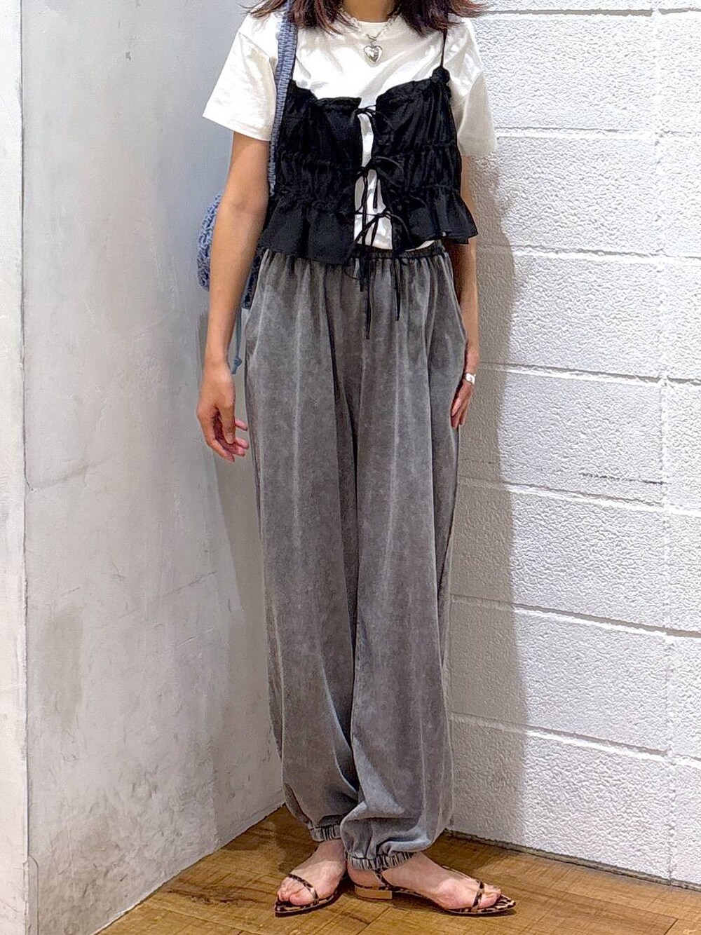 ┈┈┈┈┈┈┈┈┈┈┈┈┈ 30代 167cm 悩み🌀 ・高身長のため丈が短くなりがち ・産後のぽっこり下っ腹 ┈┈┈┈┈┈┈┈┈┈┈┈┈ ⭐各アイテムのおすすめポイント →ぜひ下の商品ページから飛んでごらんください!❤️🔥  ̄ ̄ ̄ ̄ ̄ ̄ ̄ ̄ ̄ ̄ ̄ ̄ ̄ ̄ ̄ ̄ ̄ 【トップス】 KIDSの150サイズ着用! 大人が来ても可愛いカジュアルロゴが 親子リンクにもおすすめ! ほどよく細身でスッキリ着れます! 【ボトムス】 色味がかわいいカットパンツ! 裾もゴムになっているので身長問わず着やすいです! ウエストも総ゴムで楽ちん! 【ビスチェ】 カット素材の薄いビスチェなので 真夏にレイヤードしても暑苦しくなく着れます! リボンがポイントになってかわいい🖤