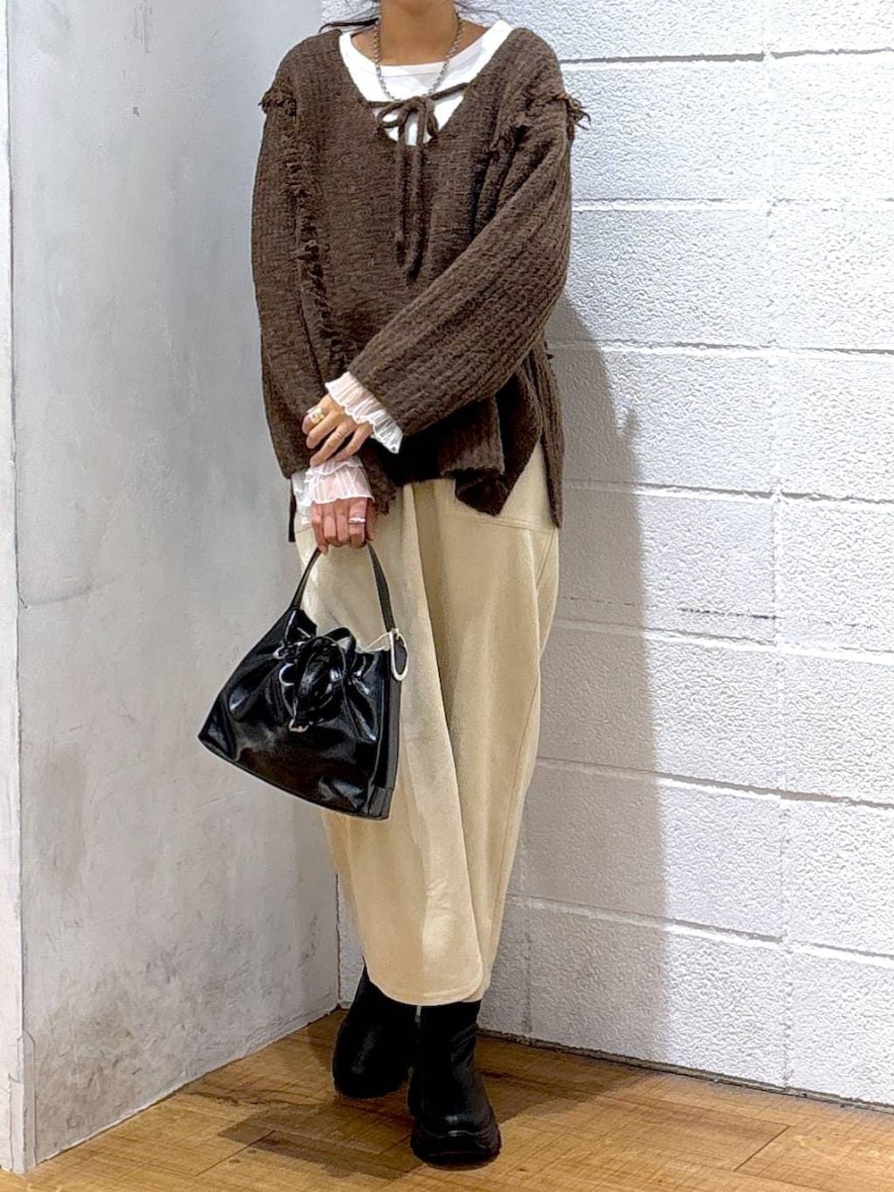 hm4150(LOWRYS FARM アリオ橋本)のニット/セーター「2WAYフリンジメランジLS 116690」を使ったコーディネート