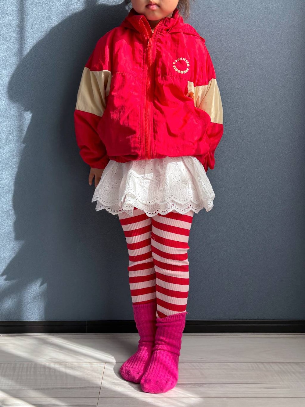 ┈┈┈┈┈┈┈┈┈┈┈┈┈ 3y11m 107cm ぽっこりお腹のむちっと体型👧🏻 ┈┈┈┈┈┈┈┈┈┈┈┈┈ ⭐各アイテムのおすすめポイント →ぜひ下の商品ページから飛んでごらんください!❤️🔥  ̄ ̄ ̄ ̄ ̄ ̄ ̄ ̄ ̄ ̄ ̄ ̄ ̄ ̄ ̄ ̄ ̄ 【アウター】 120size 本日andst にFOオンラインがオープン🎊 マルチカラーウィンドブレーカーを お試しさせていただきました! 120サイズですが袖口・裾がゴムなのでサイズ感も◎ フードがしまえるのも保育園着にもぴったり💗 春活躍間違いなしアウターです!