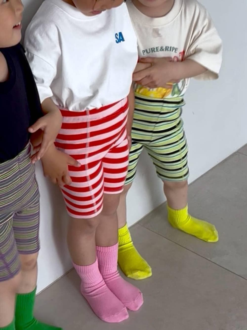 ┈┈┈┈┈┈┈┈┈┈┈┈┈ 4y1m 107cm ぽっこりお腹のむちっと体型👧🏻 ┈┈┈┈┈┈┈┈┈┈┈┈┈ ⭐各アイテムのおすすめポイント →ぜひ下の商品ページから飛んでごらんください!❤️🔥  ̄ ̄ ̄ ̄ ̄ ̄ ̄ ̄ ̄ ̄ ̄ ̄ ̄ ̄ ̄ ̄ ̄ 【トップス】 120size リゾート感あるプリントがかわいいTシャツ! カラーもポップなのもポイントになります!🦐 ゆったりとしたシルエットでボトムス問わず◎ 107cmだと120の方がゆるっと感でます! 110でもまだまだ着れそうなサイズ感ですが 少しコンパクトになるのでお好みで選んでみてください🤍 【ボトムス】120size 毎年定番サイクルパンツは 兄弟お揃いで着ても可愛い!! 107cm120でこの丈なのでジャストサイズよりも 上目を選ぶのがおすすめです!