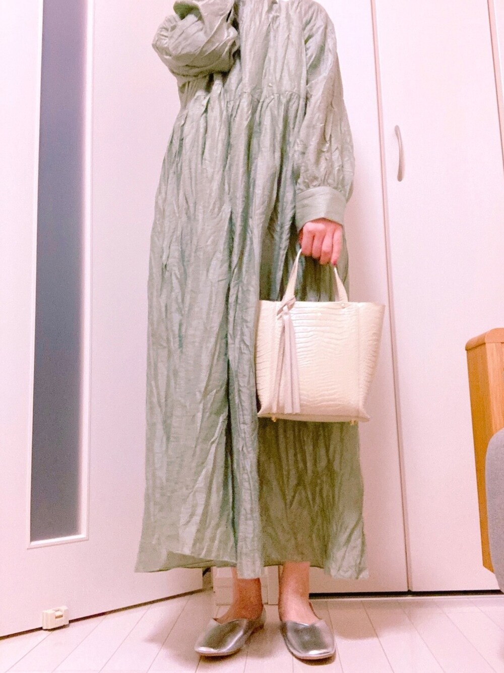 guu.のワンピース「ワッシャーロングスリーブワンピース」を使ったコーディネート