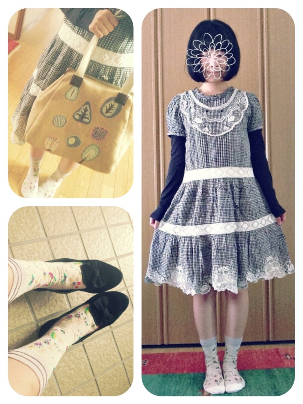 ギンガムチェックのワンピースは 刺繍とレースがかわいくておきにいり!