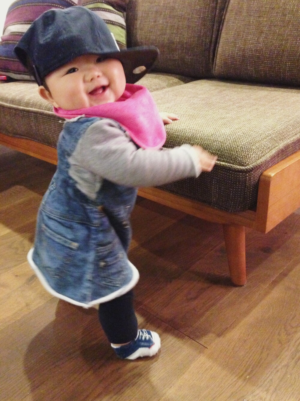 レギンス 無印 くつした ? つかまり立ちの練習中。。