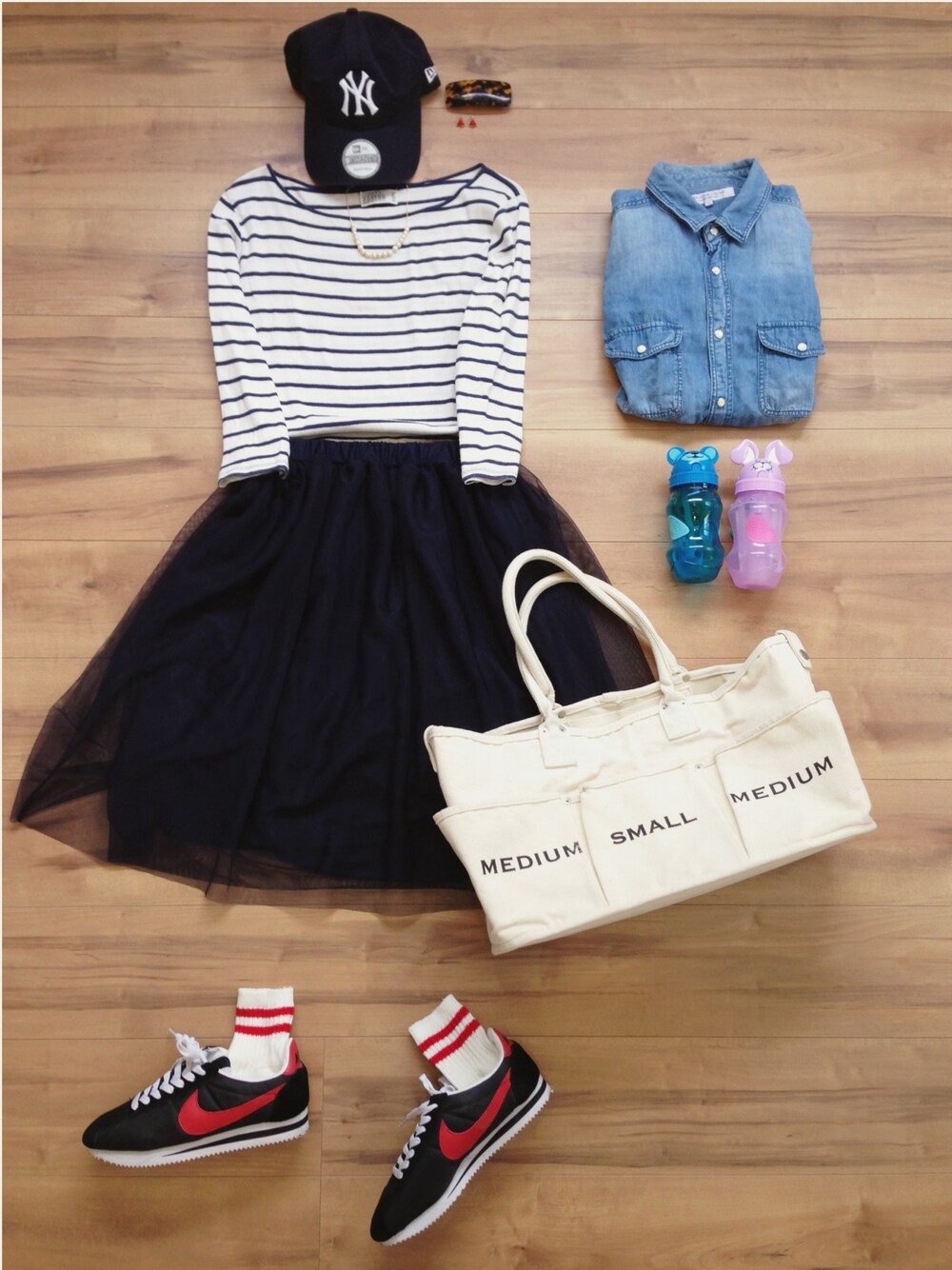 ボーダーカットソー ZARA チュールスカート earth music&ecology 妹からもらった 靴下 チュチュアンナ スニーカー ナイキ チュールスカートが甘すぎるんでスニーカーで甘辛く味付けしました꒰⍨꒱ アダムエロペの△三角ピアスがいいかんじのスパイスをプラスしてくれるのでお気に入りです♡