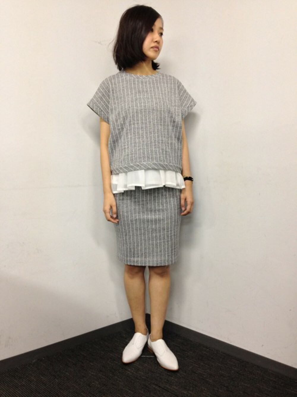 今年人気の裏毛のトップスとスカート。 もちろん別々でも着れますがセットアップで着るのが今年らしくておすすめ! 足元はヒールではなく、マニッシュなシューズを合わせてかっこよく♪