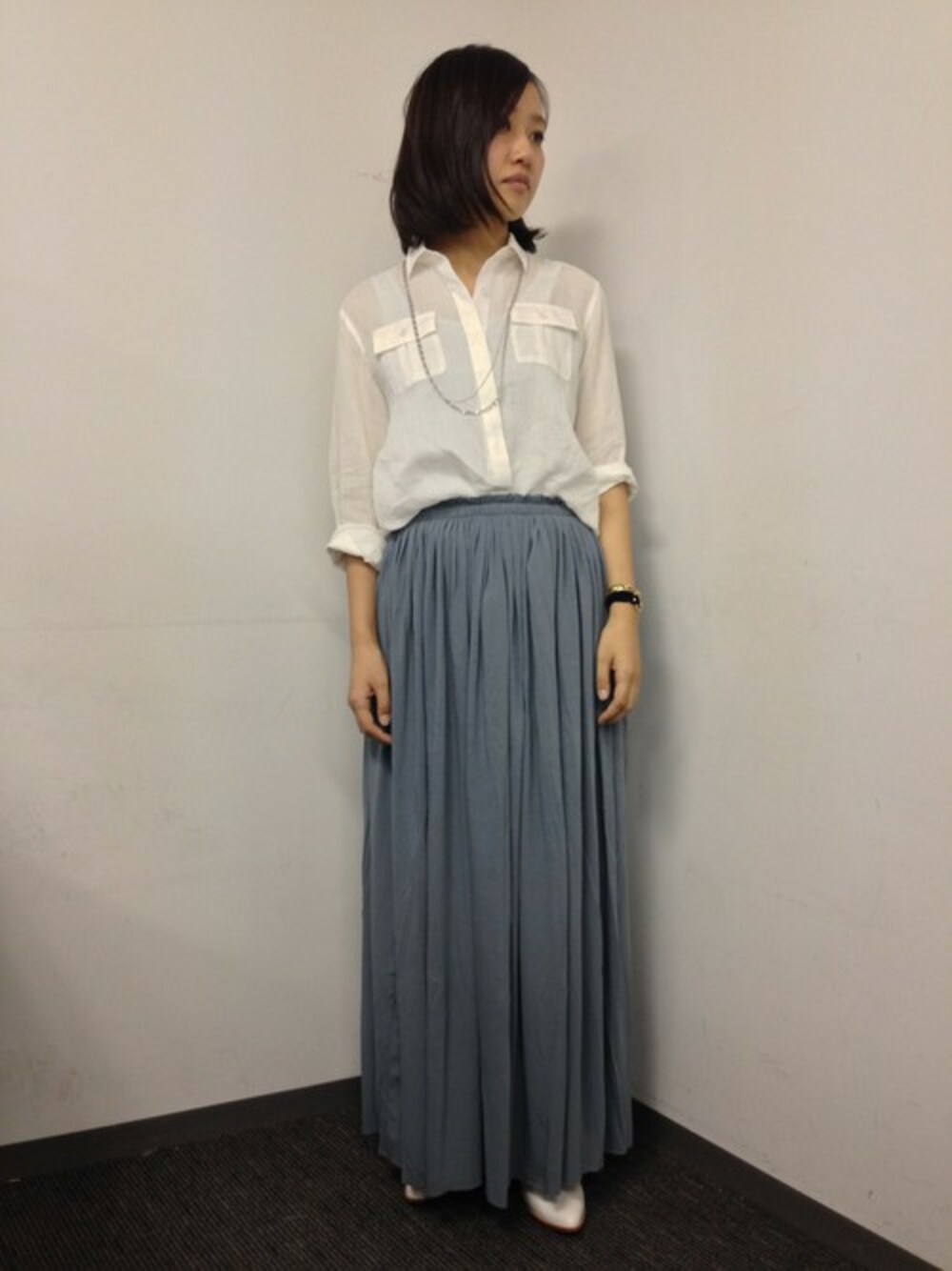 今季の大人スタイルにマストな麻シャツととっても履きやすいロングスカートでカジュアルコーディネート。 麻シャツは、ベーシックからポイントになる色まで、バリエーションがたくさん!お気に入りの1枚を☆