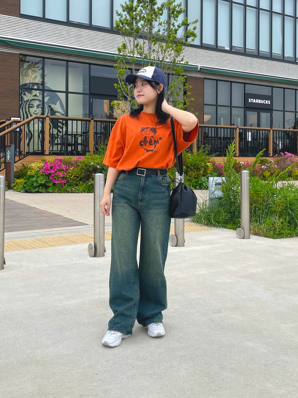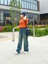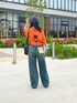 彩度の高いオレンジだからこれを着ただけでインパクト100点💮 ハイウエストのデニム併せでバランス◎! 骨ストさんはベルトでウエストマークがマスト