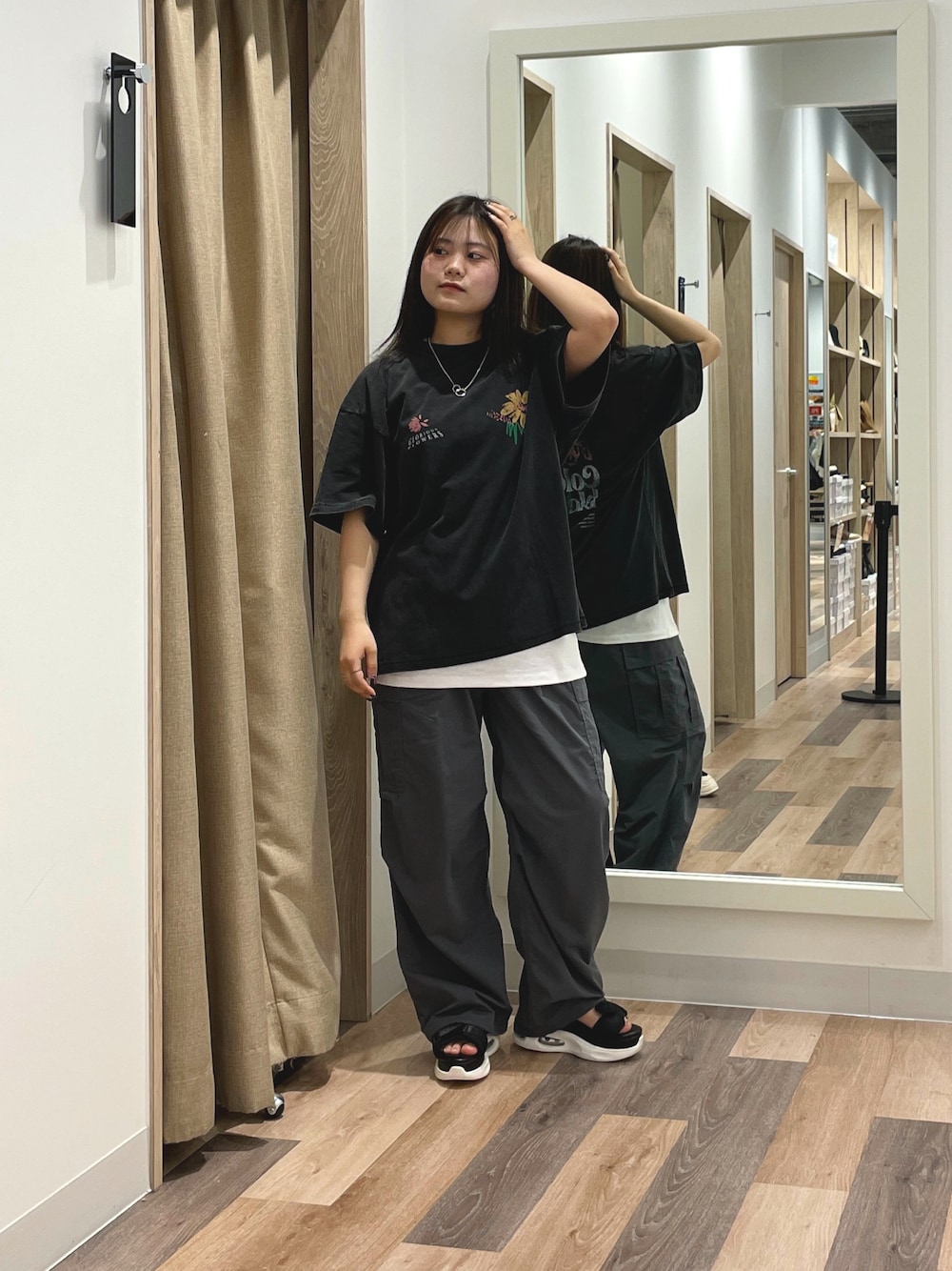 ゆるっとTシャツを着たい時は中にタンクトップを着てチラ見せすると寸胴にならずにすることができます! 夏休みのレイヤードは中に仕込むのがおすすめ!