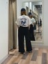 低身長さんはゆったり目サイズTシャツは着られてる感が出過ぎちゃうのでインスタイルにして裾を2回程捲るとバランスが取れて◎! スウェットは骨ストさんでも盛れるセンターラインが入っていて綺麗目見えするので骨ストさんにめちゃくちゃおすすめです!