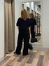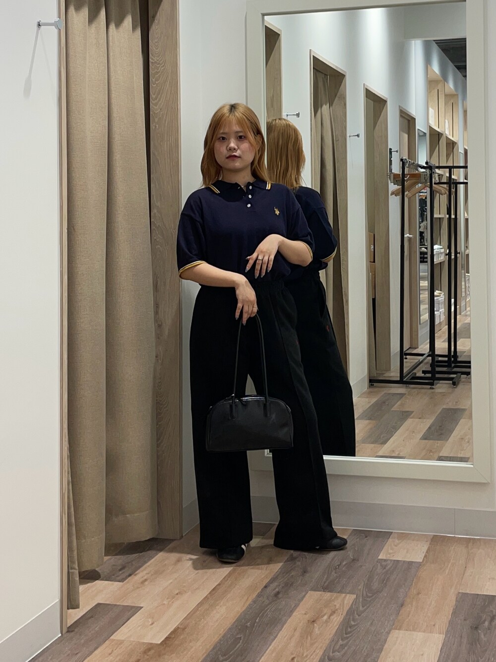 ニット素材のポロシャツで秋先取り!肌触りもモチモチでさらっと着ていただけます! スウェットはMサイズ着用でぺたんこ靴を履くと床ギリギリの丈感です!ゆったり着たい方はMサイズがおすすめ!
