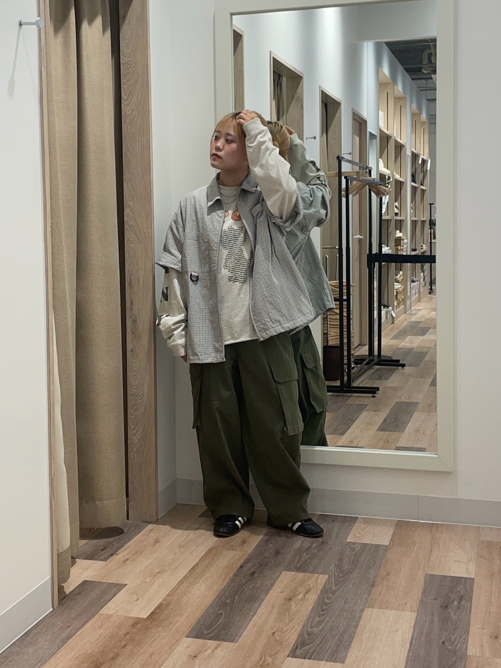 ロンTは袖にもデザインがあるのでレイヤードにおすすめです!(ユニセックスのMサイズ着用) カーゴパンツはユニセックスのSサイズ着用でくるぶしくらいの丈感です! 内側にウエストを調節できる紐があるのでもたつかずに履くことが出来ます!