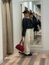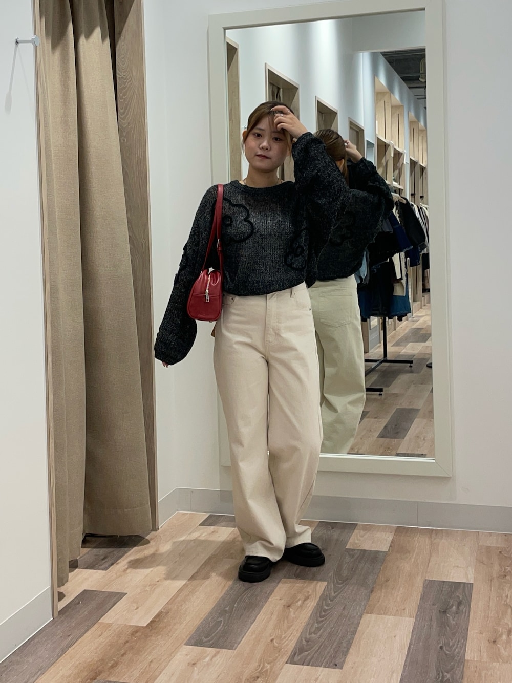 メッシュニットは洗濯機で洗えます!(ネットにいれてから!) 透かし編みなのにめっちゃあったかい! デニムはXSサイズで床ギリギリの丈感なので普段履いているサイズのワンサイズ下がおすすめ!