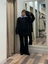 ニットはおしりが隠れるくらいのゆったりサイズになってます! 首周りと袖、裾にダメージ加工がはいっています! フレアパンツはMサイズ着用でちょうどいい丈感です!