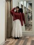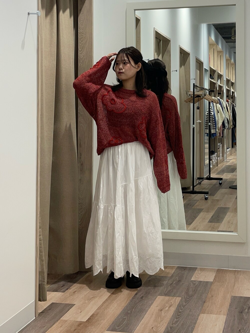 ニットは手が隠れるくらいの少し長めの袖丈になっています! 写真で見るより透け感があるのでインナーは見えてもいいものにするとおすすめです!