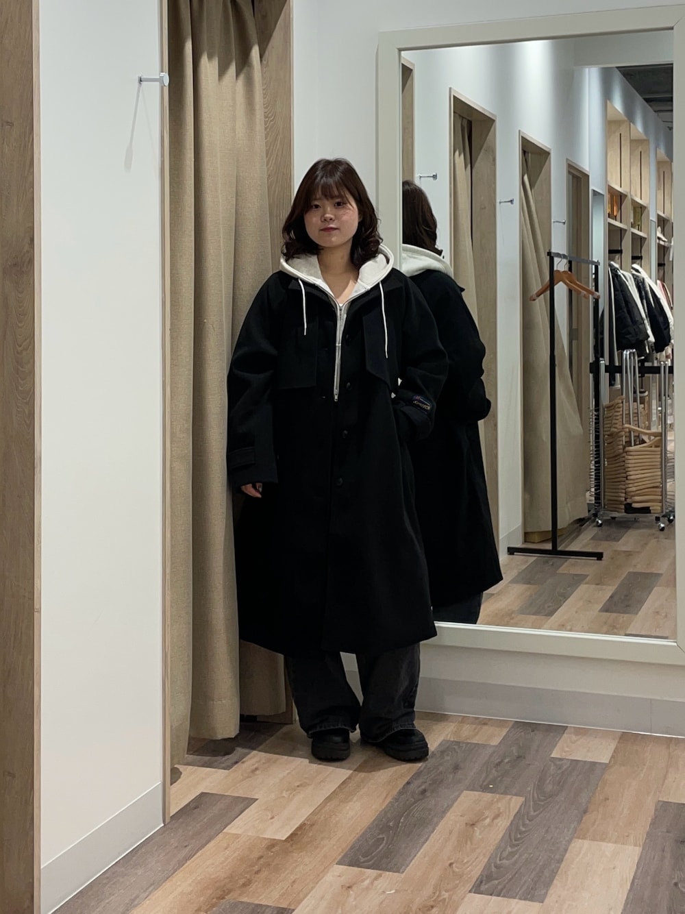 155cm 骨スト Instagram→h.m.i.o_05 短丈パーカーは裏起毛なのでこれからの季節にもぴったりです! 短丈ですが袖丈も長めフードも大きめなので骨ストさんに特におすすめです! コートはふくらはぎくらいの丈感なので低身長さんでも重たい印象にならずに着ることができます! デニムはSサイズ着用で床ギリギリの丈感なので普段履いているサイズのワンサイズ下がおすすめです!