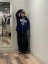 パーカーはユニセックスのMサイズなのでかなりゆるっとしたシルエットになります! ダブルジップで抜け感が出せるので骨ストさんでも着膨れせずにゆるっと着ることができます! パンツもユニセックスのMサイズ着用で厚底を履いて床ぎりぎりの丈感なので、低身長さんはSサイズがおすすめです!