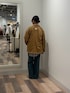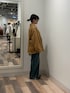 アウターは中に厚めのトップスも着込めるくらいのゆとり感のあるサイズです! シャツはユニセックスのMサイズ着用ておしりが隠れる位の丈感です! デニムはXSサイズ着用で靴にかかるくらいの丈感で長めなので普段履いているサイズのワンサイズ下がおすすめです!