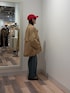 トレンチコートは全体的に大きめサイズで厚めのトップスを着ても羽織ることができます! 中のトップスは襟。袖にシャツ素材がドッキングされたアイテムです! デニムはPSサイズ着用でジャストサイズでした!丈が長めなので普段はいているサイズのワンサイズの下がおすすめです!