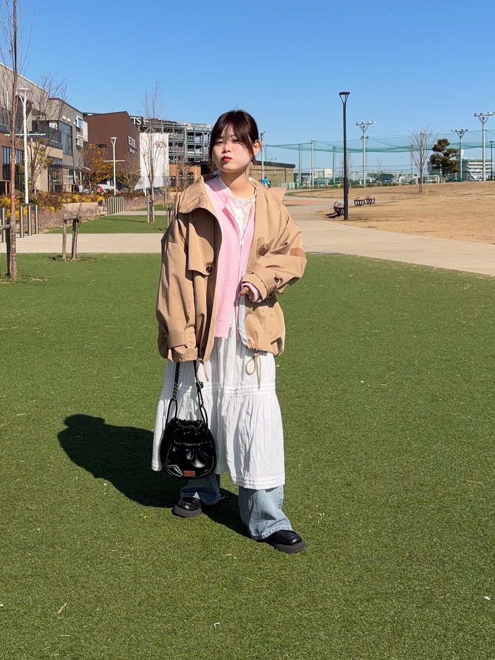 トレンチコートはおしりが隠れるくらいの丈感で、裾が絞れる仕様になっています! カーディガンはダブルジップで抜け感が出せるので骨ストさんにおすすめです! レーススカートはペチコートが着いてきます!(取り外せます)Mサイズ着用でふくらはぎくらいの丈感です!(Sサイズは膝丈くらいなので着たい雰囲気に合わせて選ぶのがおすすめです!)