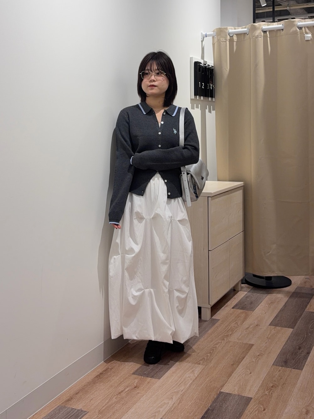 カーディガンは腰くらいまでの丈感です! 骨ストさんは上下2つずつ開けるのがおすすめです! スカートはくるぶしくらいまでの丈感です!