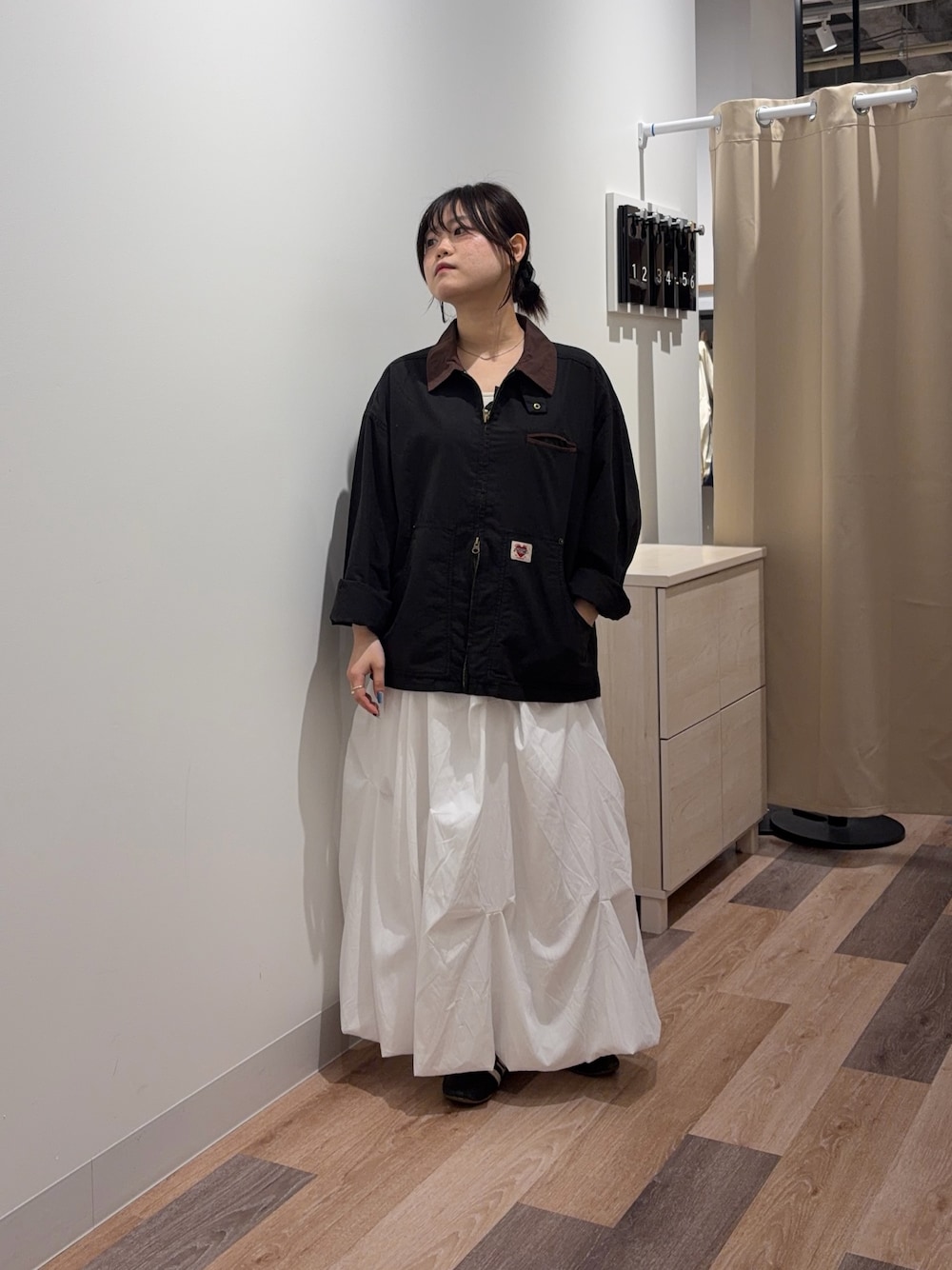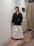 ジャケットはユニセックスのMサイズ着用なので全体的に大きめサイズです!(写真では袖を2.3回折っています) スカートはくるぶしくらいまでの丈感です!