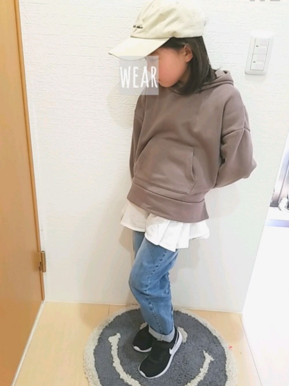 MINIのパーカー「【ママとおそろい】あったか 裏起毛 サイドスリット 長袖 ワイド パーカー」を使ったコーディネート