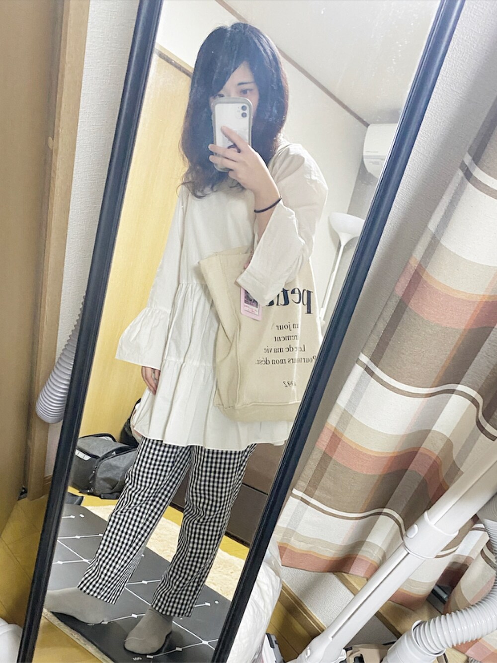 ほ。のトートバッグ「【petite by niceclaup】ロゴトートバッグ」を使ったコーディネート