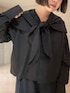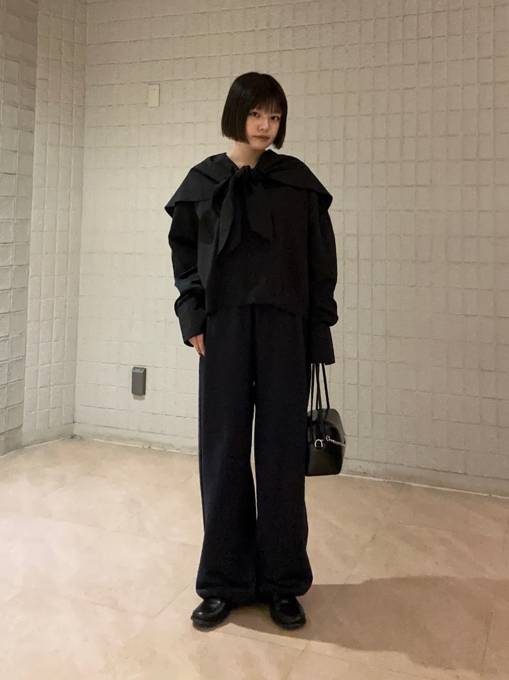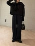 ご覧いただきありがとうございます!✨ ワントーンコーデを組んでみました! 春らしくブラウスにスウェットパンツという組み合わせですが、カラーはブラック・ネイビーと暗めのトーンで統一することで、一気にまとまりが出てスタイリッシュなコーデに!🙂↕️ ブラウスは前で結んでも、垂らして来ても可愛いです〜!! ぜひチェックしてみてください!