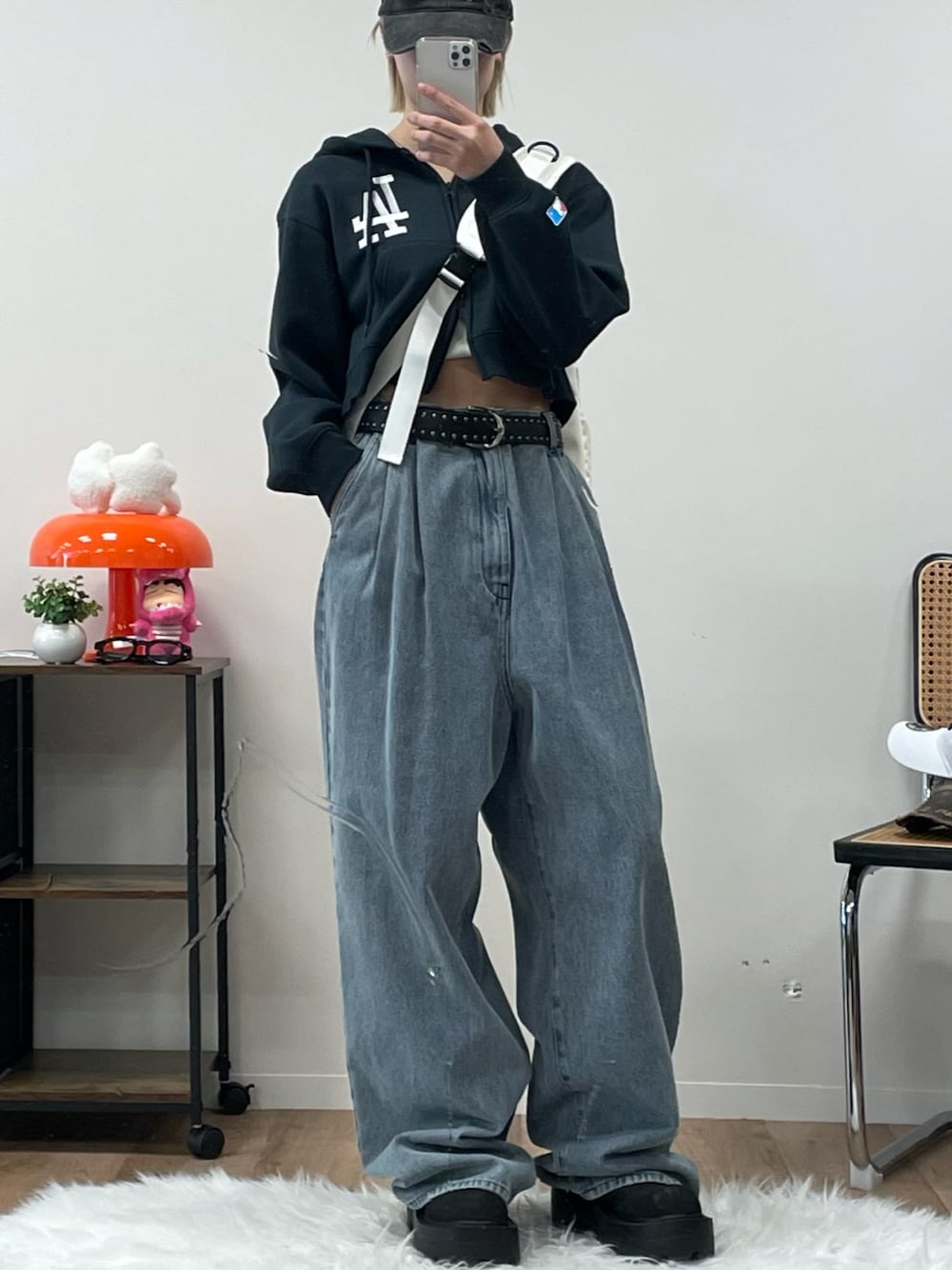 hnaadayoのデニムパンツ「【Alfred Alex】Vintage Wide Tapered Denim/ヴィンテージメイク ワイドデニムパンツ」を使ったコーディネート