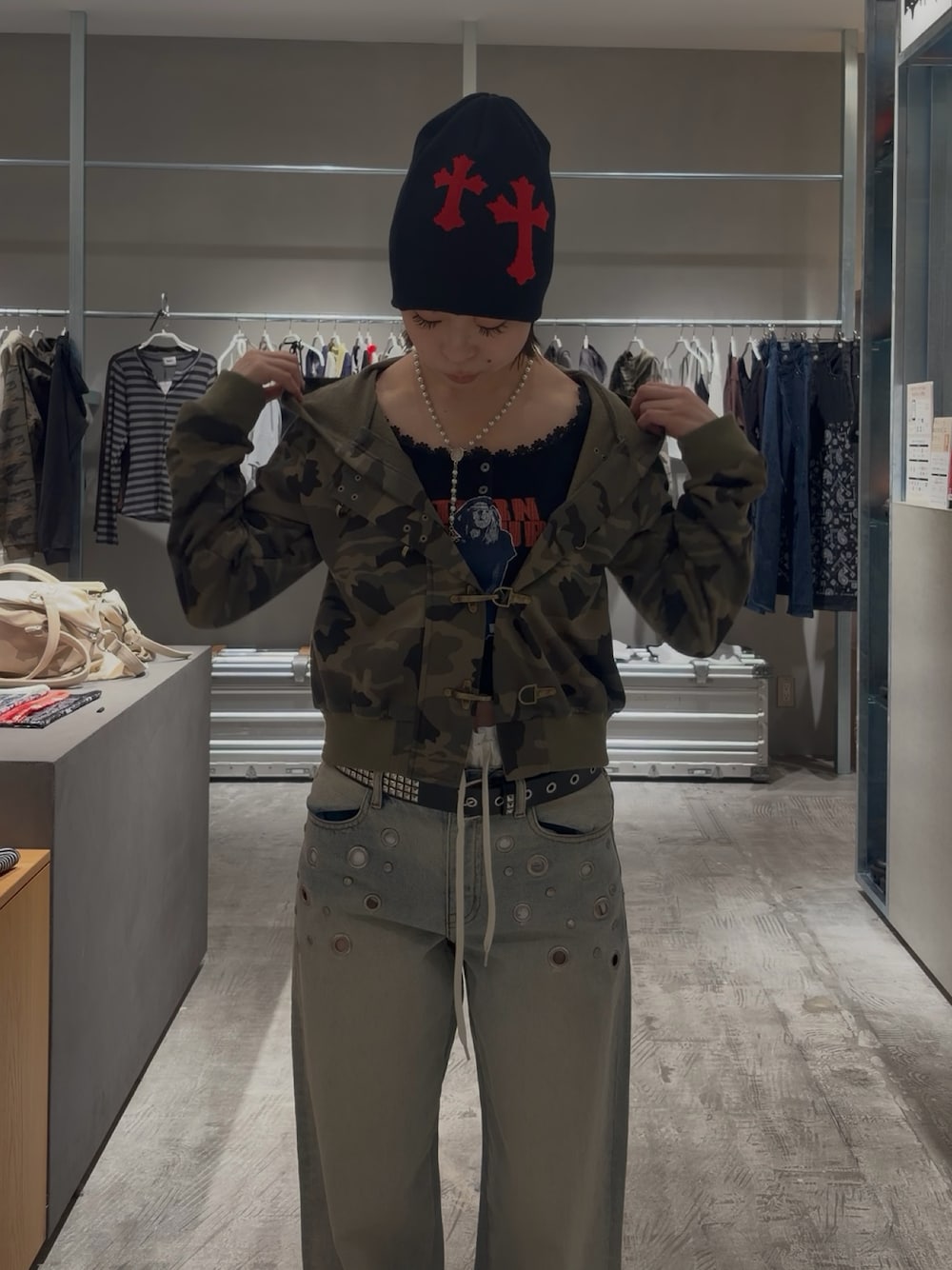 hana(WHO'S WHO gallery ZOZOTOWN/PALCLOSET店)のニットキャップ/ビーニー「クロスロゴビーニー」を使ったコーディネート
