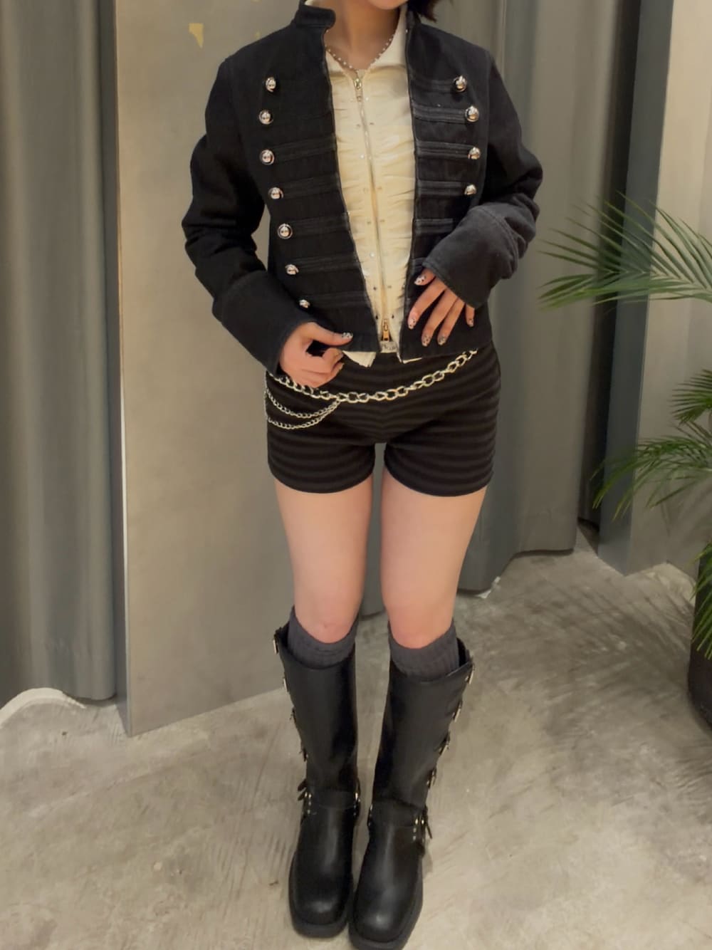 hana(WHO'S WHO gallery ZOZOTOWN/PALCLOSET店)のデニムジャケット「ナポレオンデニムジャケット」を使ったコーディネート