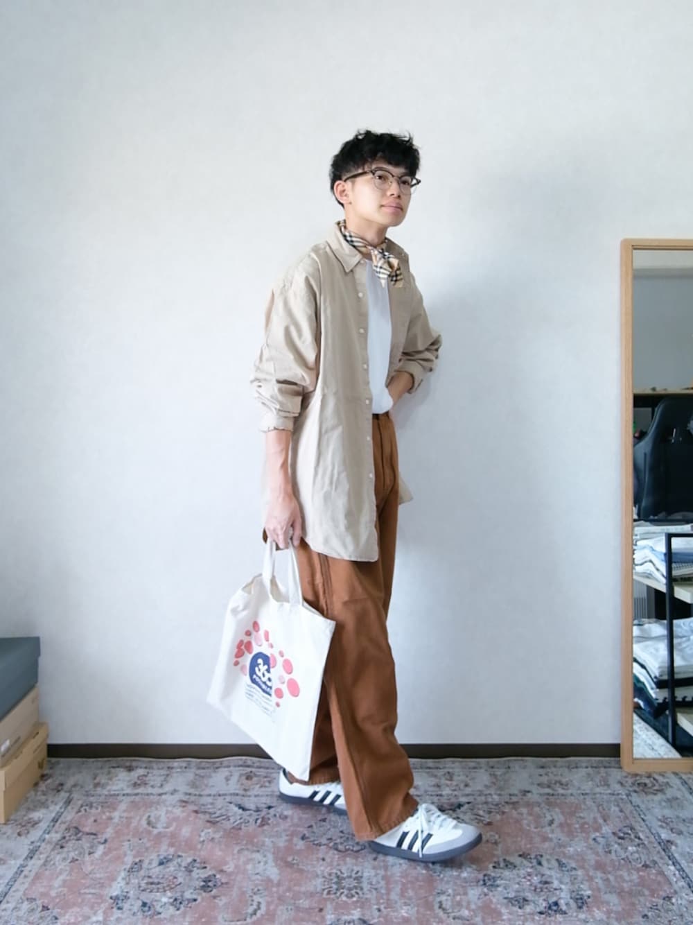 🙋🏾‍♂️ブラウンコーデです!     チェックのスカーフでラグジュアリーみを+
