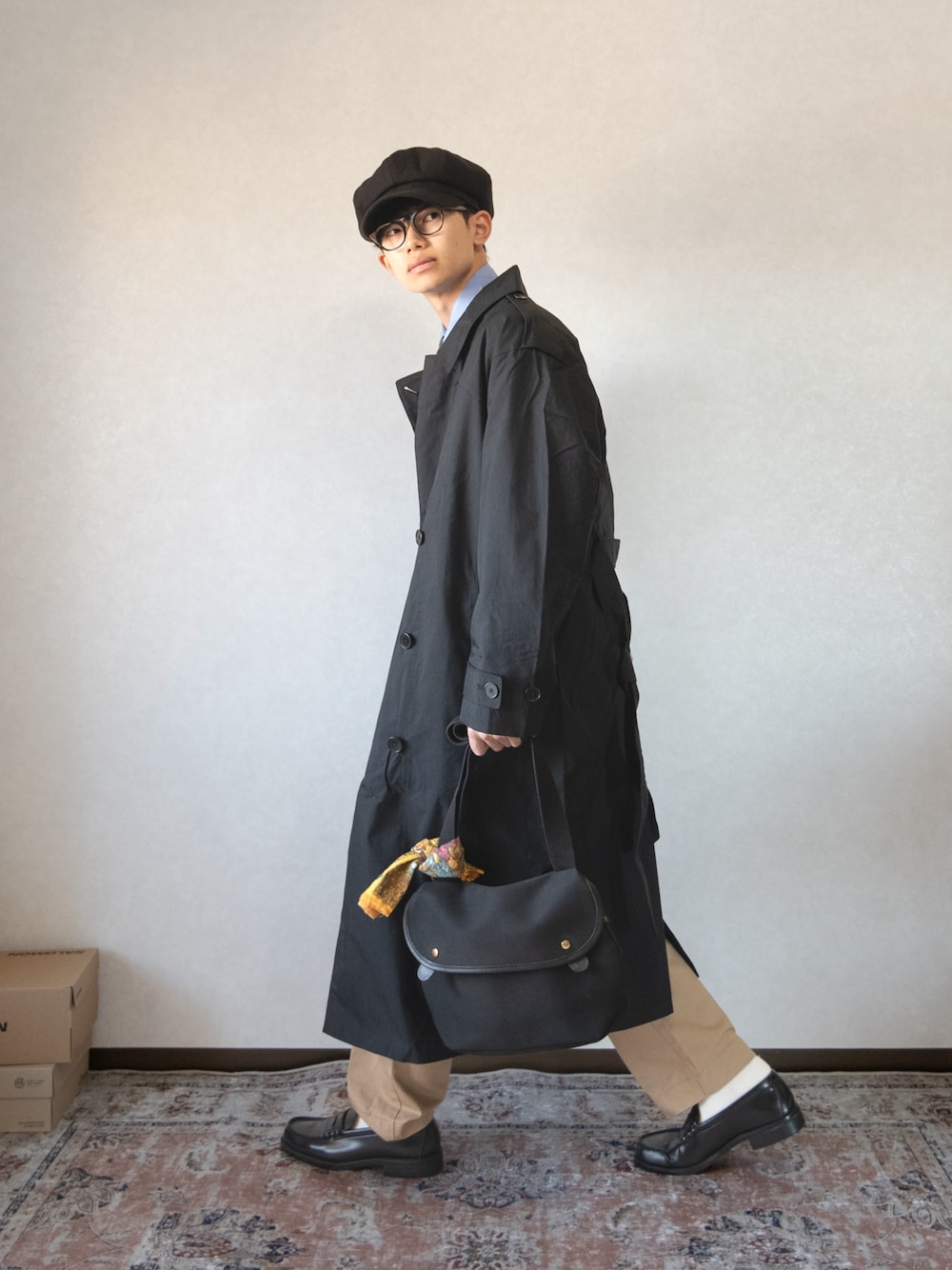 トレンチコートとBRADY bagの合わせ方。 バッグにアクセントになる燈のスカーフをプラス、これで全体的にみて単色になりつつあったコーデでしたがメリハリの効いた紳士風の大人っぽい雰囲気を纏わせることに成功したように感じます。 いつも試行錯誤してます💼
