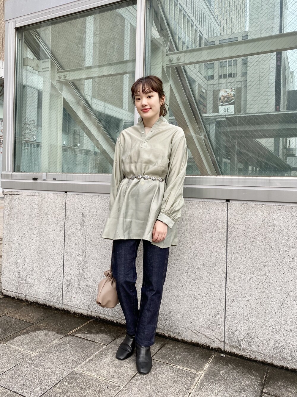 MOTOZAWA HONOKA(Kastane札幌店)のシャツ/ブラウス「パフギャザーハイネックチュニックブラウス」を使ったコーディネート